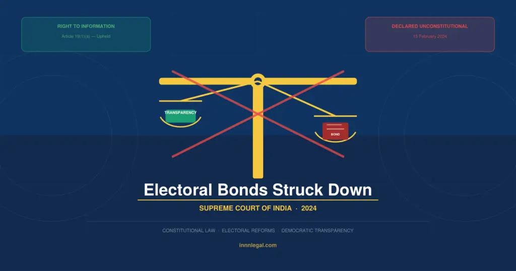 In Association for Democratic Reforms v. Union of India (2024), the Supreme Court declared the Electoral Bonds Scheme unconstitutional, holding that it violated Article 19(1)(a) and citizens’ right to information about political funding in India.