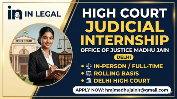 The Office of Hon’ble Ms. Justice Madhu Jain, Judge, Delhi High Court, is inviting applications for in-person, full-time judicial internships. This is a prestigious opportunity for law students to gain first-hand experience in the judicial process and witness the functioning of one of India’s leading High Courts.